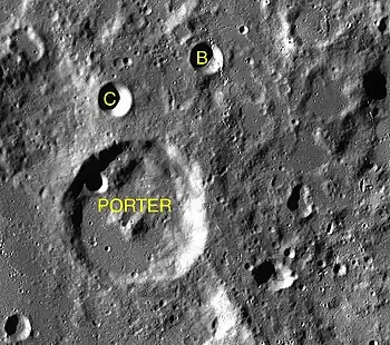 Por convención estos elementos son identificados en los mapas lunares poniendo la letra en el lado del punto medio del cráter que está más cerca de Porter.