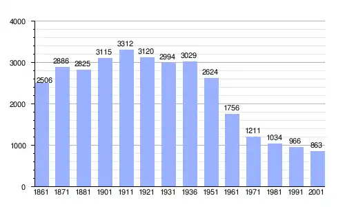 | Gráfica de evolución demográfica de Portico e San Benedetto entre 1861 y 2001 |