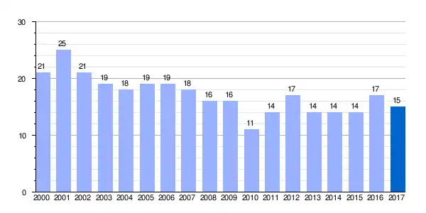 | Gráfica de evolución demográfica de Portilla[6] entre 2000 y 2017 |