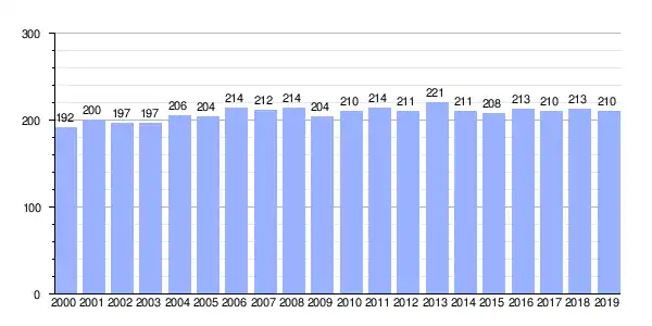 | Gráfica de evolución demográfica de Porzomillos (parroquia) entre 2000 y 2019 |