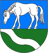 El blasón de este escudo de armas es: En oro, un león rampante atenuado con un águila recursante desplegada de gules, que significa Un fondo de oro sobre el cual aparece un león rojo rampante cortado por la mitad verticalmente a la izquierda y a la derecha un águila roja de corte similar con la espalda hacia el espectador y el ala extendida.