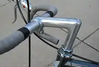 La potencia, también llamada tija del manillar (o tija del manubrio), une la horquilla a través del tubo de dirección (y el cuadro de la bicicleta) al manillar.[1] La forma y el tamaño de la potencia determinan la posición del ciclista.