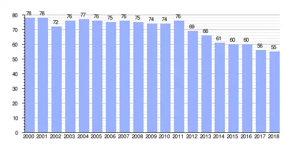 | Gráfica de evolución demográfica de Pousada entre 2000 y 2018 |