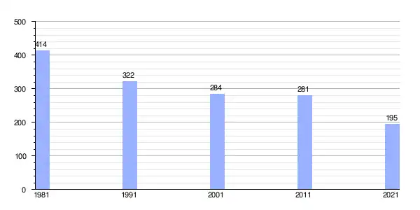 | Gráfica de evolución demográfica de Pozorrubielos de la Mancha[2] entre 1981 y 2021 |