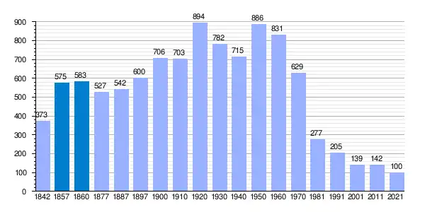 | Gráfica de evolución demográfica de Prado de la Guzpeña[6] entre 1842 y 2021 |
