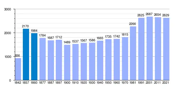 | Gráfica de evolución demográfica de Prats de Lluçanès[5] entre 1842 y 2021 |