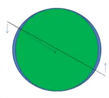 Un cuerpo no giratorio de escala planetaria o mayor sería atraído por la gravedad hasta adoptar una forma esférica. Sin embargo, prácticamente todos los cuerpos giran. La fuerza centrífuga deforma el cuerpo para que tenga un abultamiento ecuatorial . Debido a la protuberancia del cuerpo central, la fuerza gravitatoria sobre un satélite no se dirige hacia el centro del cuerpo central, sino que se desplaza hacia su ecuador. Cualquiera que sea el hemisferio del cuerpo central sobre el que se encuentra el satélite, se atrae preferentemente hacia el ecuador del cuerpo central. Esto crea un par en el satélite. Este par no reduce la inclinación; más bien, provoca una precesión giroscópica inducida por el par, lo que hace que los nodos orbitales se desplacen con el tiempo.[3]