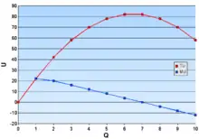 Línea roja: Utilidad total.