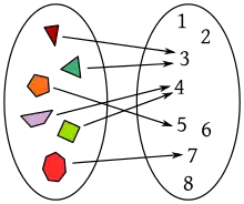 También las sucesiones infinitas de elementos tales como son funciones, cuyo dominio en este caso son los números naturales. Las palabras «función», «aplicación», «mapeo», u otras como «operador», «funcional», etc., pueden designar tipos concretos de función según el contexto. Adicionalmente, algunos autores restringen la palabra «función» para el caso en el que los elementos del conjunto inicial y final son números.[8]