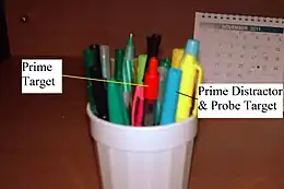 Los experimentos sobre la preparación negativa constan de dos componentes principales: principal y sondeo. El ensayo principal trata de imitar las experiencias reales de los estímulos distractores en la selección de objetivos, pero con más repeticiones para obtener datos cuantificables de preparación negativa. Comprende la presentación inicial y los ensayos repetitivos de los estímulos diana y distractor. Se configura de tal manera que un conjunto de estímulos distractores se ignoran constantemente en el proceso de selección de objetivos. En el ejemplo anterior, la preparación se refiere a la percepción repetida del bolígrafo azul como distractor. El ensayo de sondeo en un experimento se refiere a la prueba real de los efectos de la preparación negativa. En este ensayo, el distractor repetido del ensayo primario se presenta como objetivo. Para cuantificar el efecto de la preparación negativa, se mide el tiempo de reacción de la respuesta a la diana de sondeo (distractor principal).