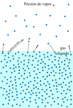 La presión de vapor es la presión que ejerce la fase gaseosa o vapor sobre la fase líquida en un sistema cerrado a una temperatura determinada, cuando la fase líquida y el vapor se encuentran en equilibrio dinámico. Su valor es independiente de las cantidades de líquido y vapor presentes mientras existan ambas. Este fenómeno también lo presentan los sólidos; cuando un sólido pasa al estado gaseoso sin pasar por el estado líquido (proceso denominado sublimación o el proceso opuesto, llamado sublimación inversa o deposición) también hablamos de presión de vapor. En la situación de equilibrio, las fases reciben la denominación de líquido saturado y vapor saturado. Esta propiedad posee una relación directamente proporcional con las fuerzas moleculares, debido a que cuanto mayor sea el módulo de las mismas, mayor deberá ser la cantidad de energía entregada (ya sea en forma de calor u otra manifestación) para vencerlas y producir el cambio de estado.