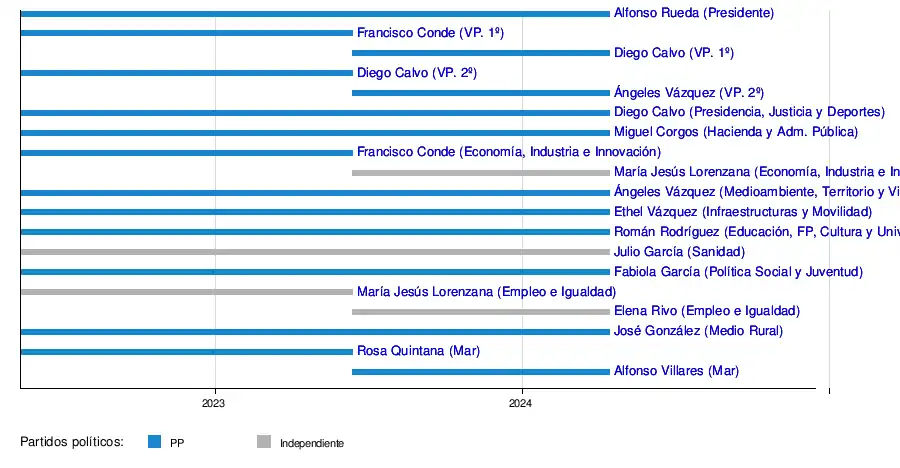 | Presidencia, Justicia y Deportes | Diego Calvo Pouso 14 de mayo de 2022-15 de abril de 2024 |