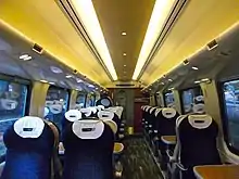 El alojamiento de primera clase en la V/Line es una disposición 2x2 de asientos reclinables con espacio adicional para las piernas, solo disponible en ciertos trenes con coches remolcados por locomotoras.[2]