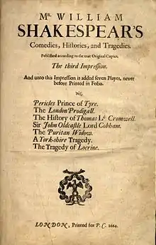 - Pericles, príncipe de Tiro, de 1609, 1611 y 1619;