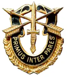 La locución latina primus inter pares significa literalmente 'el primero entre iguales'.[1] Viene a indicar que una persona, dentro de un grupo con un nivel de poder, de autoridad, homogéneo en diferentes ámbitos —bien sea social, político, cultural, religioso, etc.— es la más relevante.[2]