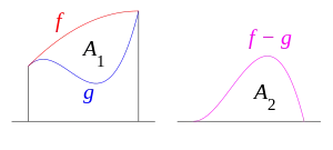 Dado que el área entre las dos funciones y es tan grande como el área calculada mediante la diferencia de las funciones , entonces y cumplen el principio de Cavalieri.