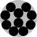 - Círculos empacados en un círculo: estrechamente relacionado con los puntos de dispersión en un círculo unitario con el objetivo de encontrar la mayor separación mínima, dn, entre puntos. Se han probado soluciones óptimas para n≤13 y n=19.