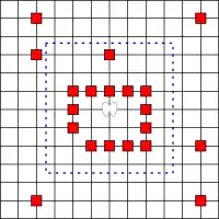El problema del ángel es un problema perteneciente a la Teoría de Juegos, propuesto por John Horton Conway[1] El juego se suele conocer por el nombre Ángeles y Demonios. El juego tiene dos jugadores, llamados el ángel y el diablo. Se juega sobre una tablero de ajedrez infinito (o lo que es lo mismo, los puntos de una cuadrícula bidimensional). El ángel tiene poder k (un número natural mayor o igual que 1), el cual es fijado antes de que el juego comience. El tablero está inicialmente vacío, con el ángel en el origen. En cada turno, el ángel salta a otra casilla vacía, la cual podría ser alcanzada por un máximo de k movimientos correspondientes a los del rey en ajedrez; es decir, la distancia a partir de la casilla inicial no es mayor que k con la norma infinito). El diablo, en su turno, puede bloquear una casilla cualquiera en la que no esté el ángel. El ángel puede saltar sobre casillas bloqueadas, pero no puede terminar su turno en ellas. El diablo gana si el ángel no puede moverse. El ángel gana si puede sobrevivir indefinidamente.