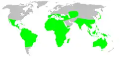 Su distribución es bastante extensa. Se encuentran en África, América (Sur y Centro), sur de Europa, Sur de Asia y Australia.