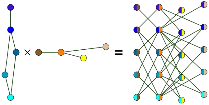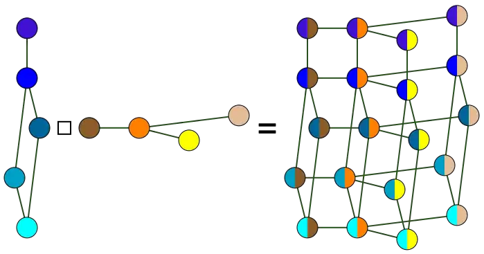 - El conjunto de vértices de H es el producto cartesiano V(G1) × V(G2), donde V(G1) y V(G2) son los conjuntos de vértices de G1 y G2, respectivamente.