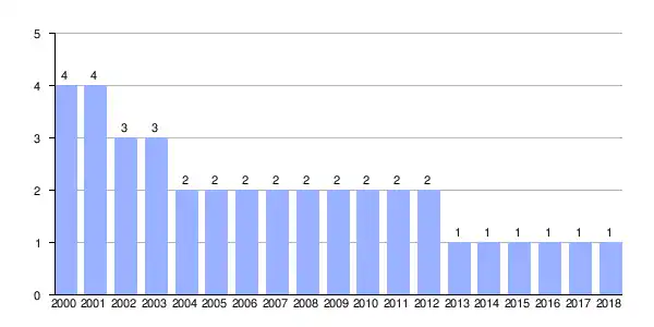 | Gráfica de evolución demográfica de Proente entre 2000 y 2018 |