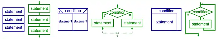 - Sequence: declaraciones ordenadas o subrutinas ejecutadas en secuencia.