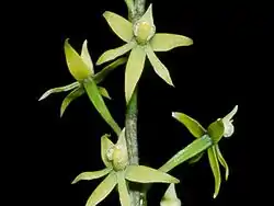 Es una orquídea de tamaño pequeño, con hábitos de epifita con crecimiento litofita sobre rocas cubiertas de musgo con pseudobulbos ovoide-fusiformes a ovales envueltos casi por completo en la juventud por varias vainas imbricadas, escariosas que llevan 2 hojas apicales, lineales, acuminadas, juntándose basalmente. Florece en el invierno y la primavera en una inflorescencia terminal, erecta, de 10 cm de largo, racemosa que surge en un pseudobulbo recién maduro con brácteas florales diminutas y lleva de 4 a 12 flores, no resupinadas, flores en forma de estrella.[1]
