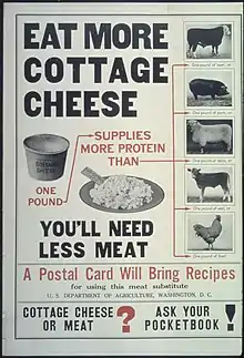 - «2015 – 2020 Dietary Guidelines for Americans: Shifts Needed To Align With Healthy Eating Patterns: A Closer Look at Current Intakes and Recommended Shifts: Protein Foods». U.S. Department of Health and Human Services and U.S. Department of Agriculture. December 2015. Archivado desde el original el 9 de enero de 2016. Consultado el 9 de enero de 2016. «Some individuals, especially teen boys and adult men, also need to reduce overall intake of protein foods by decreasing intakes of meats, poultry, and eggs and increasing amounts of vegetables or other under-consumed food groups».