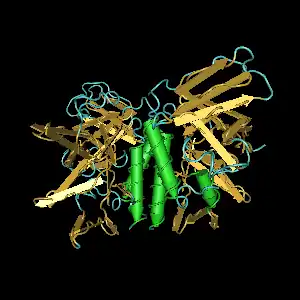 También puede unirse a ADN de cadena doble, aunque con mucha menor afinidad. Se compone de tres subunidades: