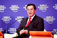 Desde 1985, Hun Sen, antiguamente miembro de la guerrilla de los Jemeres Rojos, ha estado presente de forma marcada en la vida política de Camboya, primero como primer ministro de la República Popular de Kampuchea, y luego, tras la restauración monárquica, aunque su partido perdió las elecciones, se las arregló para formar una coalición parlamentaria y liderar el país de facto. En 1997, perpetuó un golpe institucional y militar contra el Primer ministro Norodom Ranariddh, y en 1998, logró una victoria aplastante en las elecciones generales, que fueron denunciadas como un fraude por los distintos grupos opositores. Desde entonces, Hun Sen ha dominado por medio del Partido Popular de Camboya (CPP) a la frágil democracia parlamentaria establecida en 1993. Desde su llegada al poder, Camboya está entre las secciones más bajas de los índices internacionales de libertad de prensa, percepción de corrupción y calidad de vida. Hun Sen ha dejado la mayor parte de la riqueza territorial en manos de los intereses vietnamitas, lo cual ha hecho que su administración sea acusada de clientelismo. La desigualdad en la distribución de la riqueza es un grave problema, y un tercio de los niños están desnutridos. Por su parte, los críticos del gobierno son constantemente acosados y detenidos bajo cargos dudosos.[10] Sin embargo, Camboya es considerado uno de los países más estables y libres de la región Indochina,[11] aunque eso es solo teniendo en cuenta el estado de los demás países: China, Laos y Vietnam son estados socialistas de partido único,[12][13][14] y la fuerte inestabilidad política de Tailandia propicia diversos golpes de estado que impiden una consolidación democrática.[15]