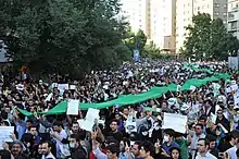 Tras las elecciones presidenciales en Irán de junio de 2009, se llevaron a cabo protestas en Teherán y otras importantes ciudades en Irán y de todo el mundo contra el presunto fraude electoral y en apoyo del candidato de la oposición Mir Hosein Musaví y Mehdí Karrubí.[1] En respuesta, otros grupos se han manifestado en Teherán en apoyo a la supuesta victoria de Mahmud Ahmadineyad.[2] Las protestas en curso han recibido varios títulos, como "Revolución Verde", debido al color usado durante la campaña electoral por Musaví; "Revolución del Parque de la Libertad"[cita requerida], debido a la ubicación de las protestas en Teherán; "Despertar Persa" también ha sido utilizado por algunos comentaristas iraníes y también por los manifestantes[cita requerida]. En medios gubernamentales iraníes opuestos a las protestas, estas son conocidas como «la fitna del 88» (por el año 1388 del calendario persa, coincidente con 2009-2010: فتنه ۸۸, trsc. fetné-ye hashtad o hasht).[3]