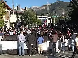 ![]() Una marcha en Puerto Aysén con un lienzo que dice «Ni balas ni gases doblegarán la Patagonia». | ||