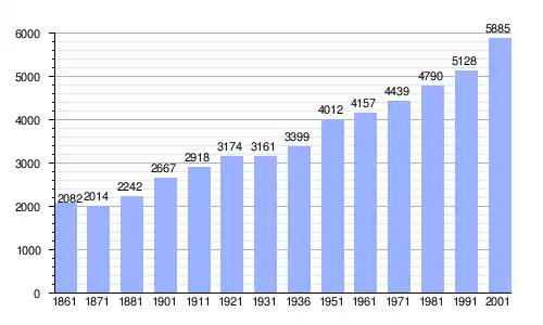 | Gráfica de evolución demográfica de Provaglio d'Iseo entre 1861 y 2001 |