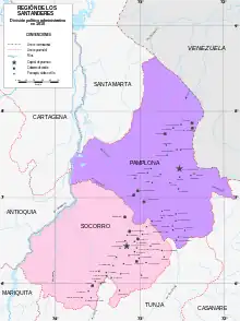![]() Localización de la provincia de Pamplona en la Nueva Granada hacia 1810 | ||||||||||||||||||||||||||||||||||||||||||||||||||