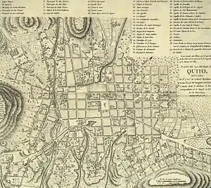 Algunos de los sucesos internacionales como la Declaración de Independencia de los Estados Unidos en 1776 de Gran Bretaña y la Revolución francesa de 1789, sirvieron de ejemplo a los criollos al mostrarles que un sistema de gobierno autónomo o incluso independiente era posible. Las influencias de varios acontecimientos locales tales como la visita de los geodésicos franceses quienes impulsaron las ideas de la ilustración en la urbe,[20] el alto índice de empobrecimiento de la Audiencia[21] y los crecientes sentimientos nacionalistas, estimulados por el interés de los criollos de todo el continente por obtener el poder,[22] fueron también algunas de las causas principales, que motivaron el inicio del proceso revolucionario que dio fin al colonialismo español en la ciudad.