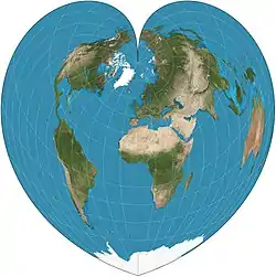 La proyección es una forma límite de la proyección de Bonne, que tiene su paralelo estándar en uno de los polos (90°N/S).[1][2] Las distancias a lo largo de cada paralelo y a lo largo del meridiano central son correctas, al igual que todas las distancias desde el polo norte.