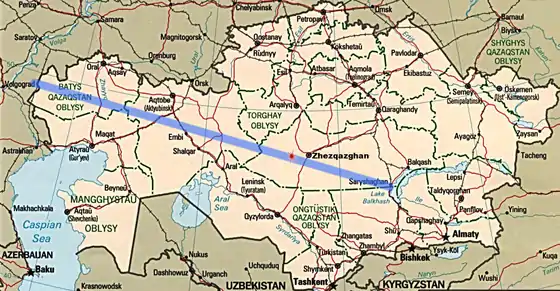 Los misiles nucleares fueron lanzados desde el Cosmódromo de Kapustin Yar al este de Volgogrado (antes Stalingrado), en la parte superior izquierda del mapa. El estallido de color rojo en la trayectoria de vuelo al oeste de Zhezqazghan es el lugar de la detonación de la prueba nuclear K-3 (prueba N.º 184). Las ubicaciones de las detonaciones de las demás pruebas no se han dado a conocer, pero a partir de las altitudes de las detonaciones publicadas y la física de base, se sabe que las otras detonaciones tuvieron lugar a lo largo de la trayectoria de vuelo designada entre el lugar de la detonación de K-3 y Saryshagan (en el extremo oriental de la trayectoria de vuelo). El daño en la línea telefónica instrumentada provocado por la prueba de K-3 fue desde Zhezqazghan través de Karaganda (Karaganda), hacia el norte de Astaná (Antes se llamaba Akmola, la capital de Kazajistán) y terminó en un lugar desconocido, al norte de Astaná.[3]