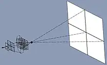 El Factor de proyección (Throw) de un proyector.[22] Se utiliza al instalar proyectores para poder calcular el tamaño de la pantalla proyectada. Por ejemplo, si la relación de proyección es de 3:1 y el proyector está a seis metros de distancia de la pantalla, entonces el ancho de la pantalla será de dos metros.[23]