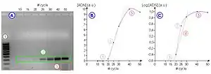 - PCR cuantitativa: se usa para medir la cantidad de un producto de PCR. En la técnica clásica de PCR, se cuantifica por aproximación con diluciones y amplificación de concentraciones conocidas de la secuencia diana. También se puede cuantificar por método competitivo: se trabaja con concentraciones crecientes conocidas de un fragmento que puede ser amplificado por los mismos oligos que la muestra de estudio, pero de menor tamaño que esta, de forma que con los resultados obtenidos se puede estimar qué concentración del competidor es equivalente a la de la muestra de cantidad desconocida. La cuantificación en PCR está optimizada en la técnica de PCR en tiempo real.