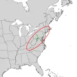 No es común en los bosques húmedos, donde normalmente se encuentra en elevaciones entre los 300 a 700 m s. n. m. La especie es más común en el suroeste de Pensilvania, con algunas poblaciones más pequeñas notables en Virginia Occidental, Tennessee y Connecticut.[4]