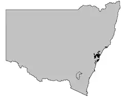 Esta especie es endémica de Nueva Gales del Sur. Habita entre los 10 y 1000 m sobre el nivel del mar en el Parque nacional Real en Gosford y Newcastle.[5]