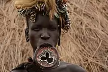 Las mujeres mursi lucen platos de arcilla o madera incrustados en sus labios y en las orejas, como también son increíbles los peinados con ornamentos como aros metálicos y telas diversas. Los hombres lucen unos espectaculares dibujos pintados con tiza blanca por todo su cuerpo.