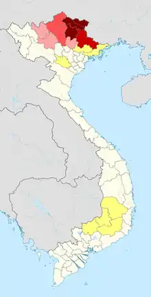 Hay alrededor de 1,7 millones de personas Tày que viven en Vietnam (de acuerdo con una proyección a cinco años del censo de 2009), lo que los convierte en el segundo grupo étnico más grande del país. La mayoría se encuentra en las provincias de Cao Bang, Lạng Sơn, Bắc Kạn, Thai Nguyen y Quang Ninh, donde viven a lo largo de los valles y las laderas inferiores de las montañas. También viven en algunas regiones de las provincias de Bắc Giang y Bac Ninh. Habitan en llanuras fértiles y son generalmente agricultores; cultivan principalmente arroz, pero también cultivan maíz y batata.