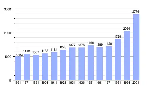 | Gráfica de evolución demográfica de Puegnago sul Garda entre 1861 y 2001 |
