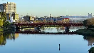 En 1899 se empezó a construir un puente de hierro con tramo central levadizo (contaba con cuatro columnas) para el pasaje de barcos, inaugurándose en 1903.