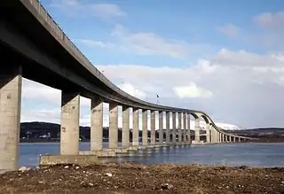 Tiene 1220 m de longitud y está hecho de concreto con 36 secciones. La más larga mide 150 m y tiene una altura máxima de 41 m. El puente es parte de la ruta estatal noruega 862. Fue inaugurado en 1974 por el príncipe Harald V, aunque fue abierto en diciembre de 1973. Tuvo un costo de 36 millones de coronas. Tuvo peaje hasta mayo de 1982.[1][2]