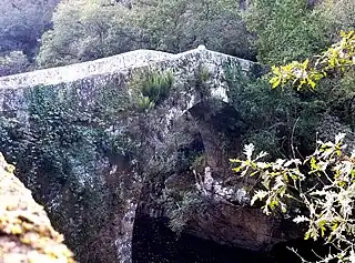 ![]() Puente Taboada sobre el río Deza, parte de la Ruta de la Plata del Camino de Santiago. | ||