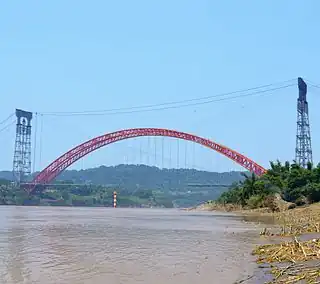 Se inauguró en 2012 siendo en ese momento el tercer puente en arco más grande del mundo por longitud del vano principal (530 m), además del más largo más largo en CFST (acrónimo en inglés, por concrete filled steel tubular, lit. 'tubos de acero rellenos de hormigón') (puestos que conserva en 2018). Tiene una longitud total de 841 m y un ancho de 30,6 m.