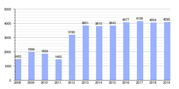 | Gráfica de evolución de Deuda viva del Ayuntamiento de Puente de Génave entre 2008 y 2019 |