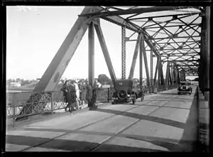 Fue inaugurado en 1925.[1] Inicialmente se lo diseñó para uso ferroviario, pero las vías colocadas en el puente no fueron utilizadas, salvo en su inauguración, y se lo convirtió en un puente para tránsito automotor. Dada que el Río Santa Lucía era muy utilizado para la navegación comercial a principios del siglo XX (y lo siguió siendo hasta mediados de ese siglo), se diseñó el puente con un tramo giratorio que permitiera el paso de las embarcaciones.[2] Fue remozado totalmente en el año 2019, reparándose los mecanismos giratorios y retirándose finalmente las vías ferroviarias.